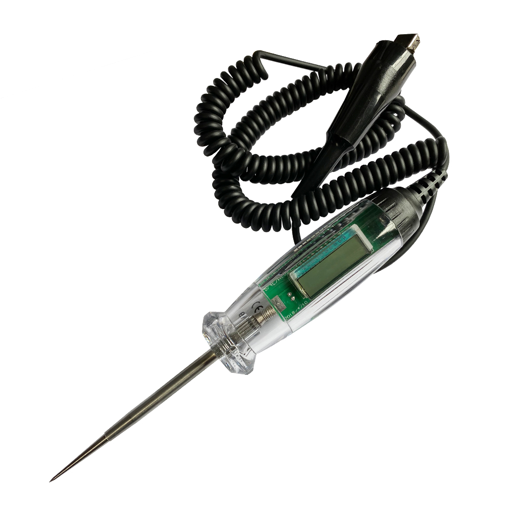 Our LCD Test Light can be used on 6V, 12V, 24V and 48V. Test for voltage on both power and ground in DC Circuits with a coiled cord with a reach of 10 ft. Comes with stainless steel probe.